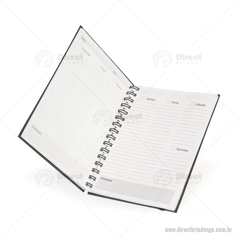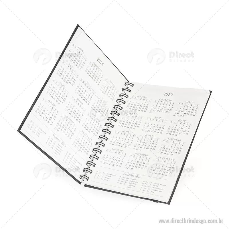 Planner com capa dura em papel cromado. Possui marca-páginas em fita de cetim e elástico para fechamento, oferecendo praticidade no uso diário. Inclui páginas para dados pessoais, calendários de 2025 a 2027 e diversas seções para planejamento, com espaços destinados a anotações diárias e semanais ao longo de todo o ano. Ideal para organizar rotinas, metas e compromissos com estilo e funcionalidade. - - DRTGOAGE033