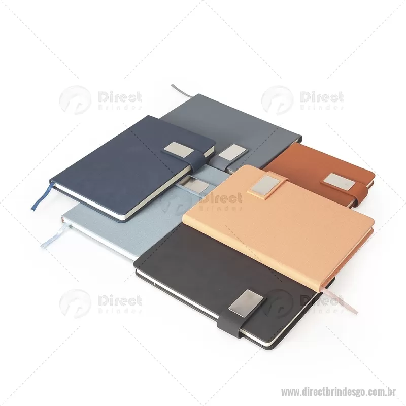 Caderneta de capa dura confeccionada em couro sintético, com acabamento elegante e fecho magnético para maior praticidade. Possui placa metálica personalizável na capa, ideal para aplicação de logotipo ou nome. Conta ainda com marca-página em fita de cetim e aproximadamente 96 folhas internas brancas pautadas, proporcionando organização e conforto na escrita. - - DRTGOBLC281