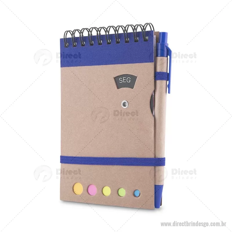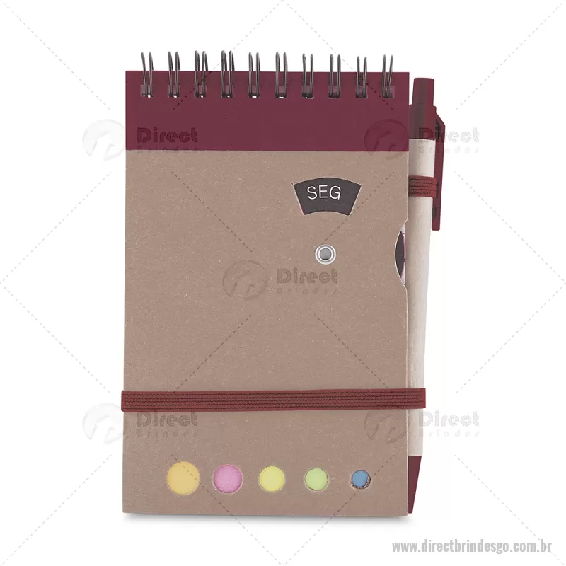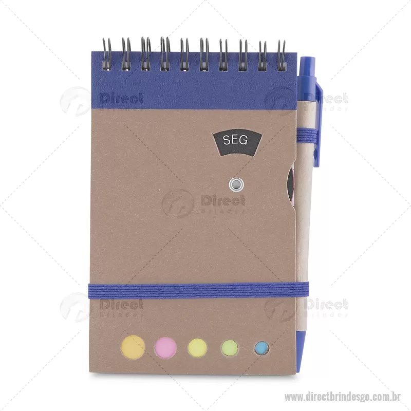 Mini caderno A6 com caneta com capa em papel kraft, com 70 folhas pautadas e blocos adesivos (sticky notes) coloridos. Acompanha disco rotativo na capa com os dias da semana e caneta produzida em papelão reciclado com detalhes em plástico e escrita em azul. Peso do Produto: 0,088kg (Caderno) Peso do Produto: 0,004kg (Caneta) Dimensão Produto: 14,5x9cm (Caderno) Dimensão do Produto: 3,6xø0,9cm (Caneta) - - DRTGOBLC275