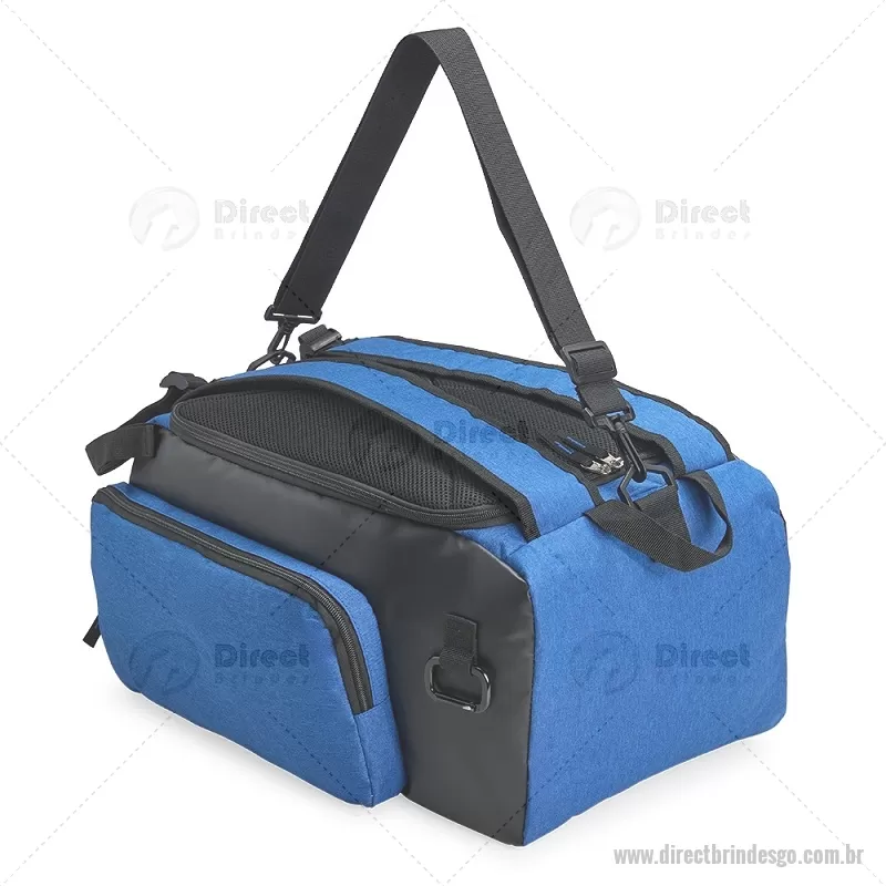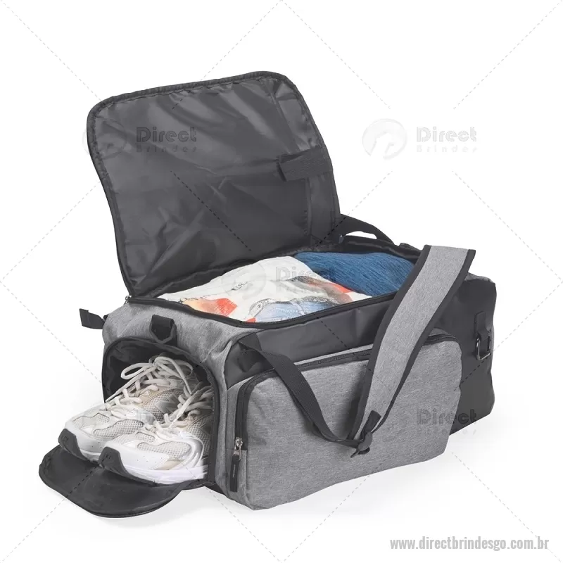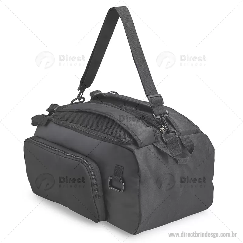 Bolsa esportiva em poliéster resistente à água, com detalhes emborrachados e capacidade de até 40 litros. Possui três compartimentos principais, incluindo bolso para notebook de até 13” e espaço separado para calçados. Conta com bolso lateral em malha, alça transversal ajustável e removível, além de alças acolchoadas e área traseira com espuma respirável, permitindo uso como mochila. - - DRTGOBOL050