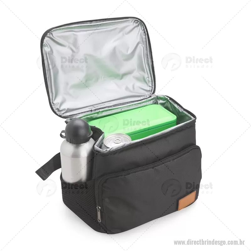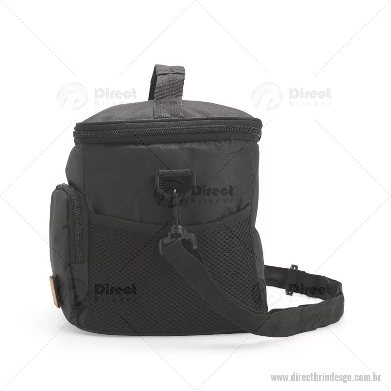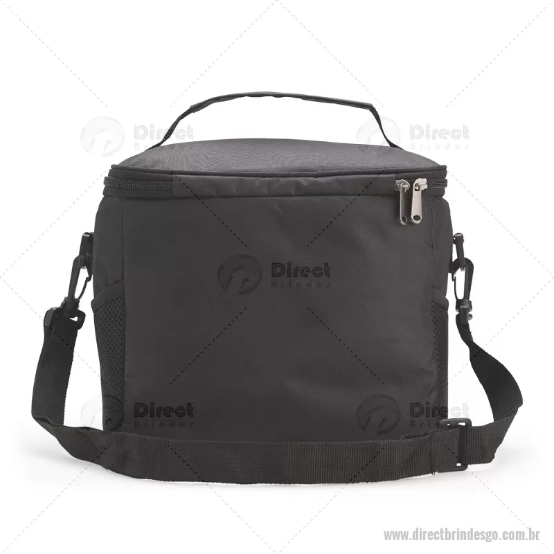 Bolsa térmica de 11 litros feita em Oxford resistente à água, com revestimento interno em PEVA atóxico e fechamento em zíper. Possui bolso frontal com plaquinha em couro sintético, dois bolsos laterais em tela, alça superior em nylon e alça transversal removível e ajustável. Prática e funcional para uso diário. - - DRTGOBT101