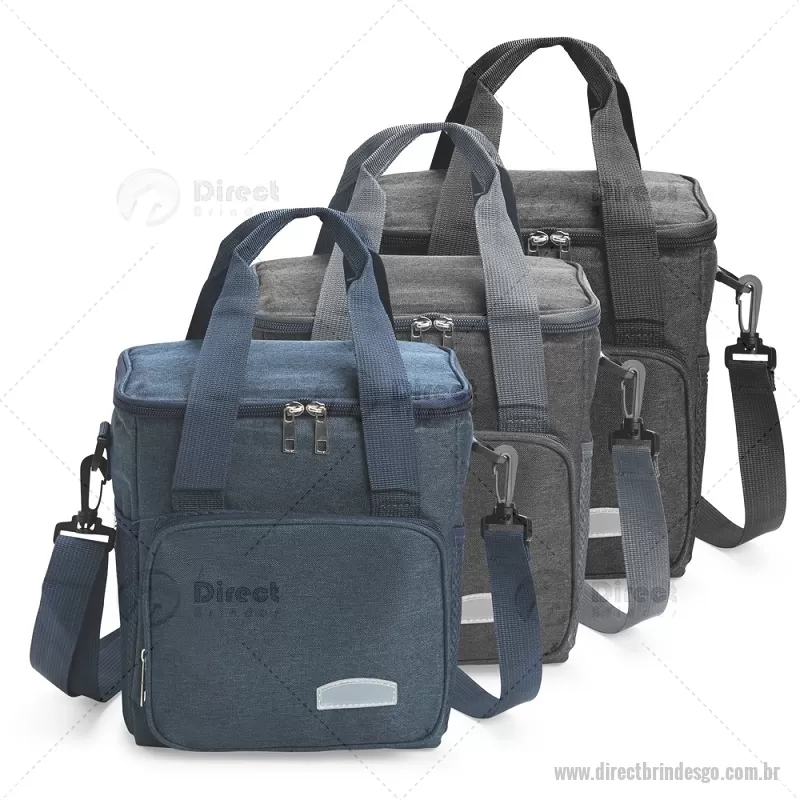 Bolsa térmica de 11 litros feita em Oxford resistente à água, com revestimento interno em PEVA e tampa isolada com folha de alumínio. Possui bolso frontal com zíper, dois bolsos laterais em tela, alças laterais fixas e alça transversal removível. Ideal para manter alimentos e bebidas na temperatura por mais tempo. - - DRTGOBT106