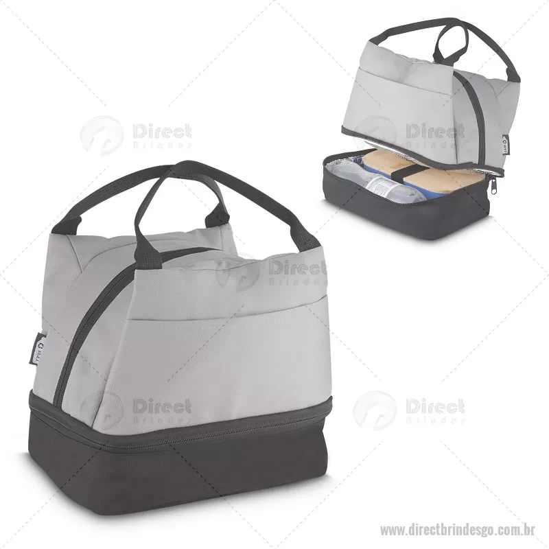 Bolsa térmica 7litros em tecido PET Reciclado com 2 compartimentos térmicos costurados, bolso frontal e alça de mão. Dimensão Produto: 21x24x15cm (AxLxP) Peso do Produto: 0,130kg Volume: 7L - - DRTGOBT094