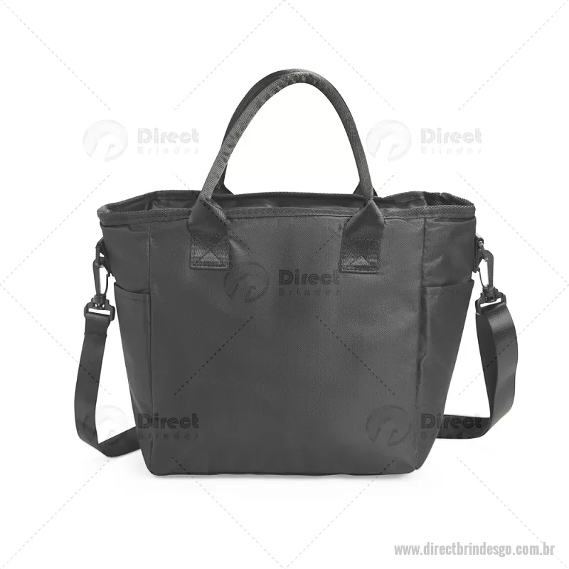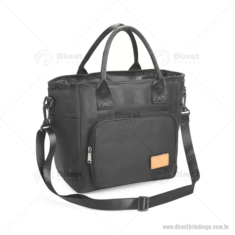 Bolsa térmica de 13 litros feita em Oxford resistente à água, com revestimento interno em PEVA e fechamento em zíper. Possui bolso frontal com plaquinha em couro sintético, dois bolsos laterais, alças de mão fixas e alça transversal regulável com mosquetões. Funcional e ideal para uso diário. - - DRTGOBT104