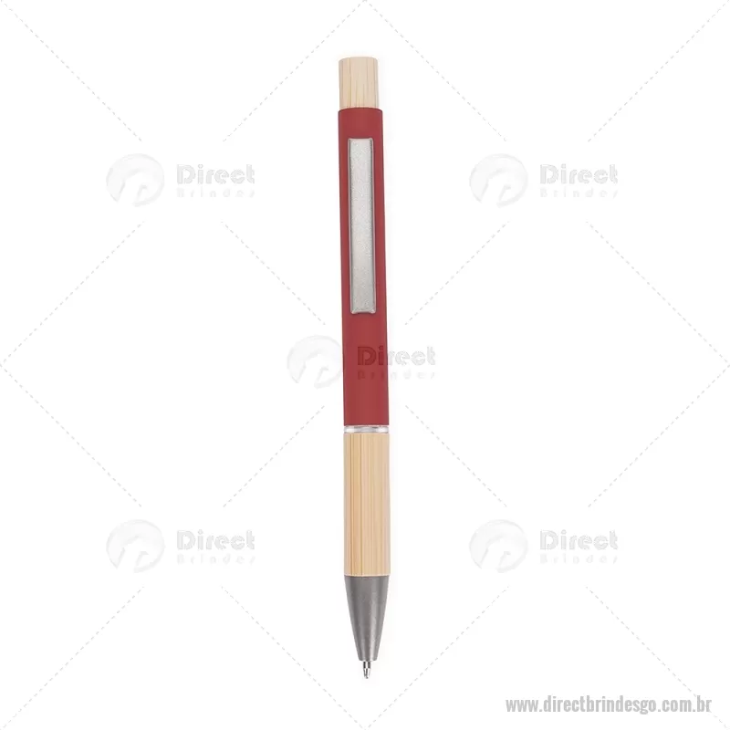Caneta esferográfica azul 1,0 mm com corpo metálico, detalhes em bambu e acionamento por clique. Leve e confortável, proporciona escrita precisa no dia a dia. - - DRTGOCMT296
