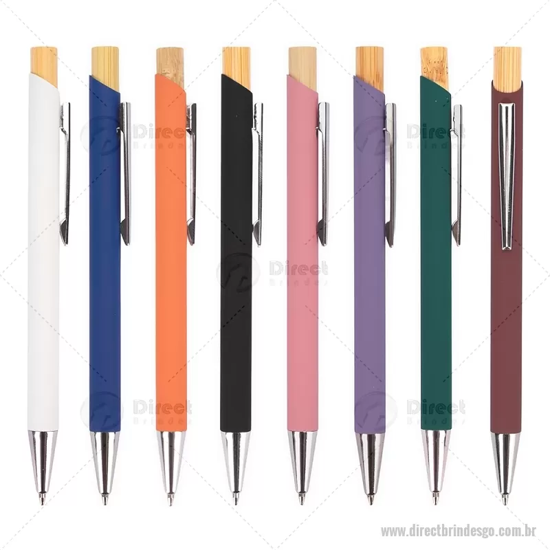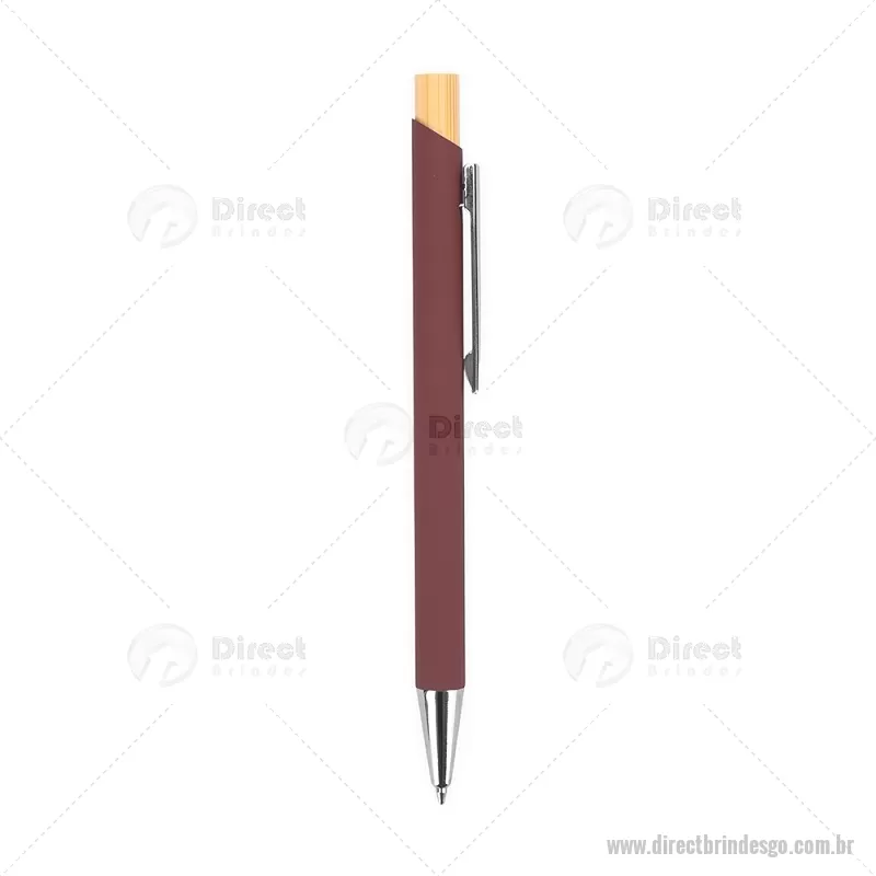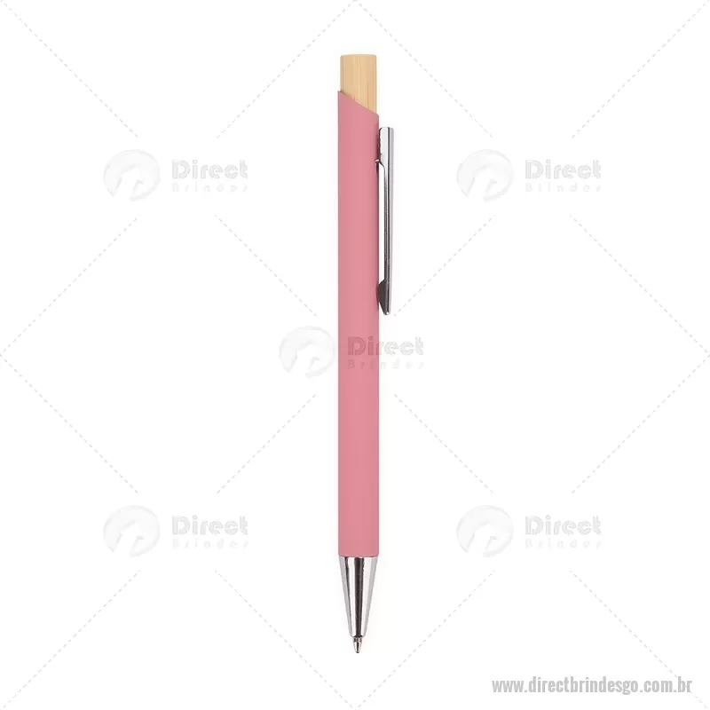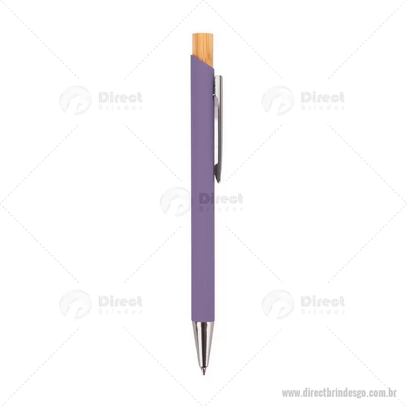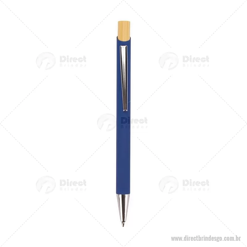 Caneta esferográfica azul 1,0 mm com corpo metálico e acionamento por clique em bambu. Oferece escrita leve, confortável e precisa para o uso diário. - - DRTGOCMT297