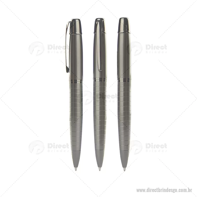 Caneta metálica esferográfica twist com escrita em azul. Dimensão Produto: 14,0xø1,3cm (AxøD) Peso do Produto: 0,033kg - - DRTGOCMT170