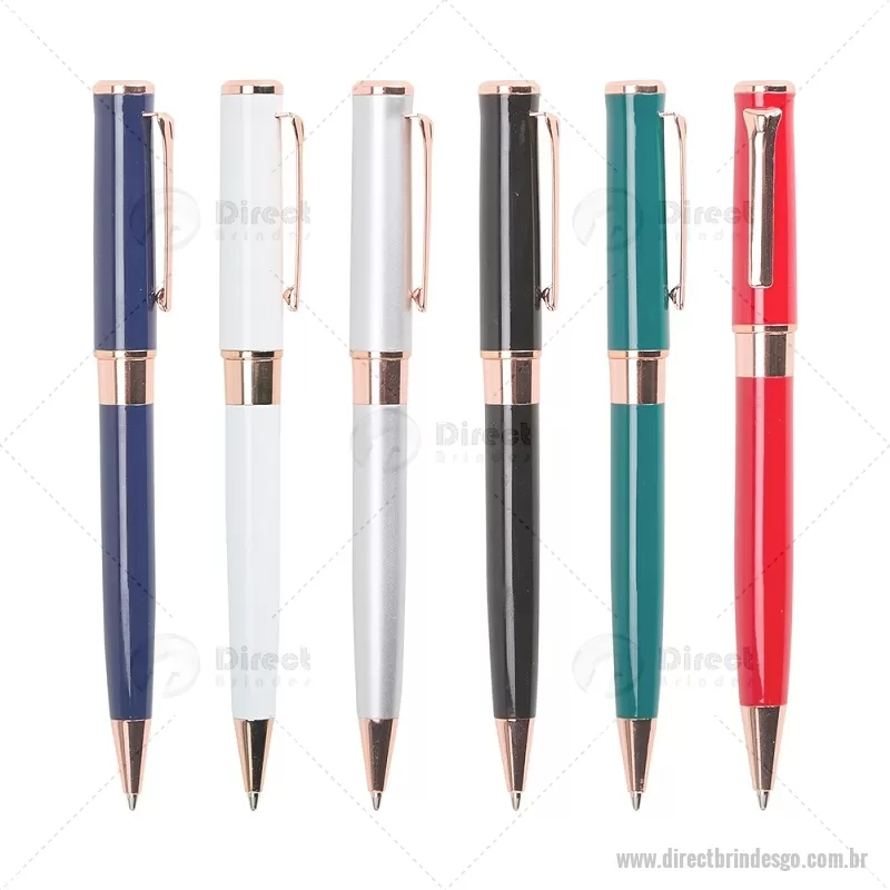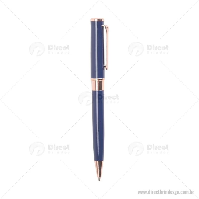 Caneta esferográfica com tinta azul 1,0 mm, acionamento por rotação e corpo totalmente metálico. Seu design oferece escrita suave, confortável e precisa, ideal para uso diário ou profissional. - - DRTGOCMT300