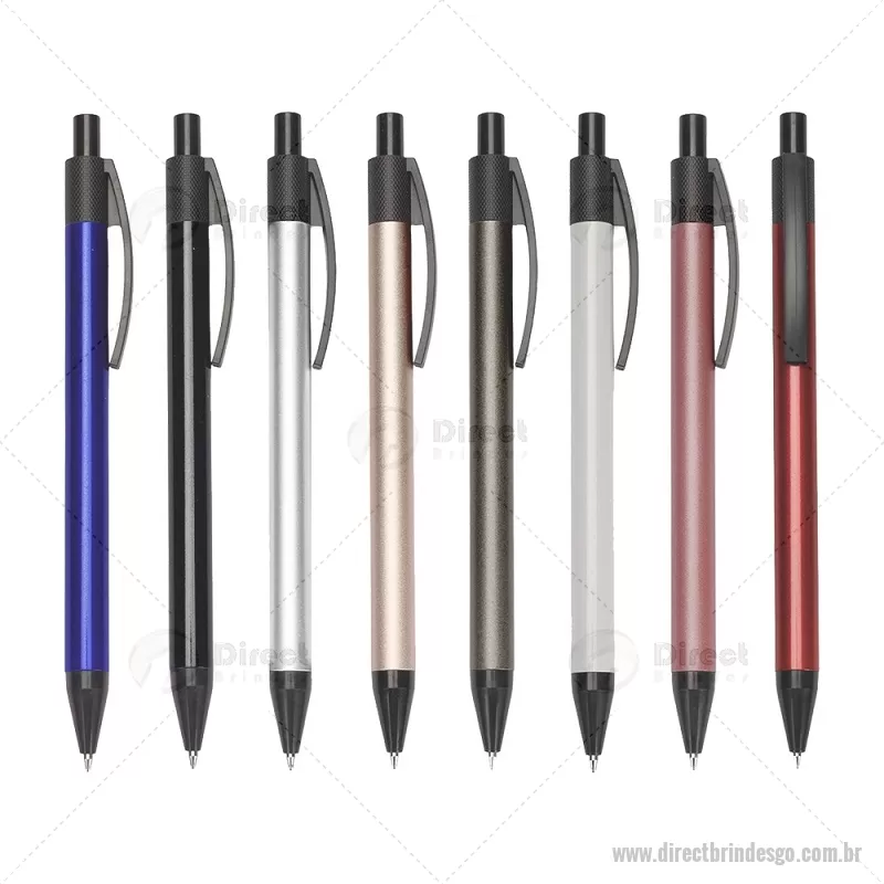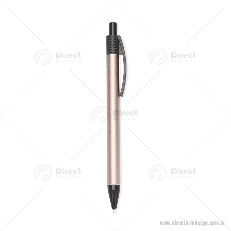 Caneta com corpo em metal, ponteira e clip em plástico, equipada com acionamento por clique. Possui carga esferográfica azul de 1,0 mm, garantindo escrita suave, leve e precisa para o uso diário. - - DRTGOCMT301