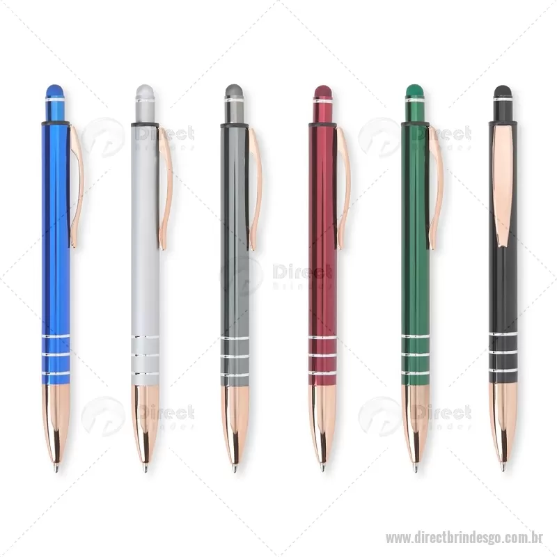 Caneta Metal Touch Caneta metálica com acionador touch, clipe metálico e ponteira plástica. Carga esferográfica azul 1.0mm e acionamento por clique. Largura : 1,6 cm x Comprimento : 14,4 cm Peso aproximado (g): 17 - - DRTGOCMT291