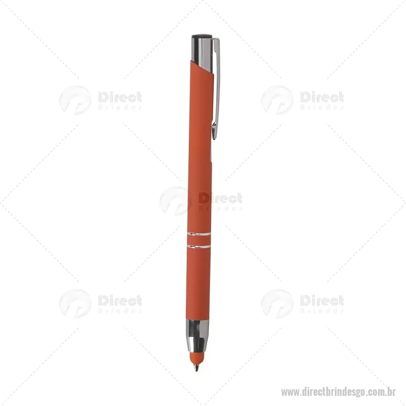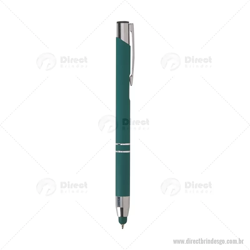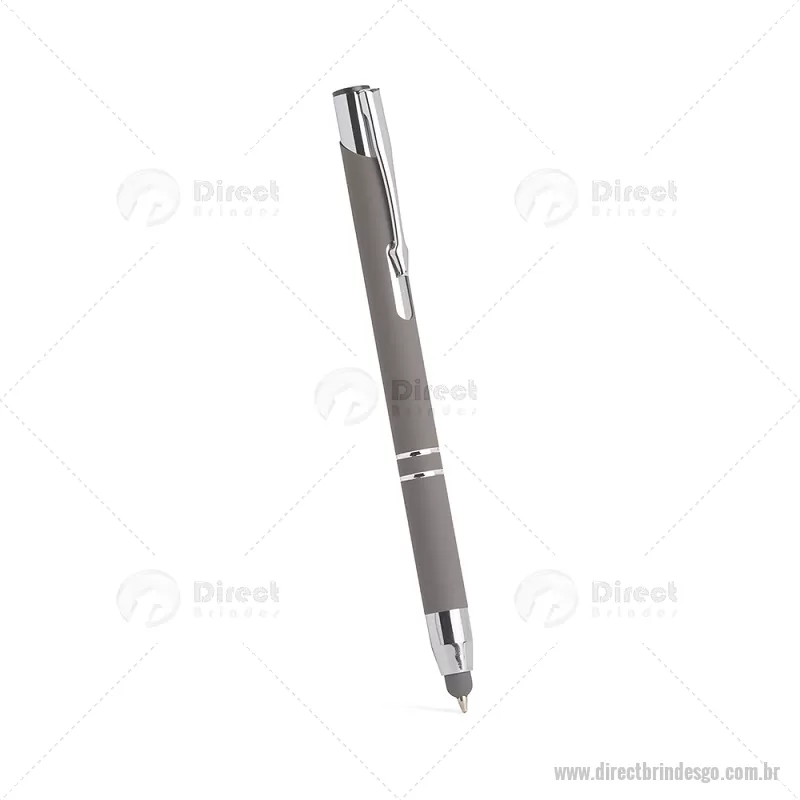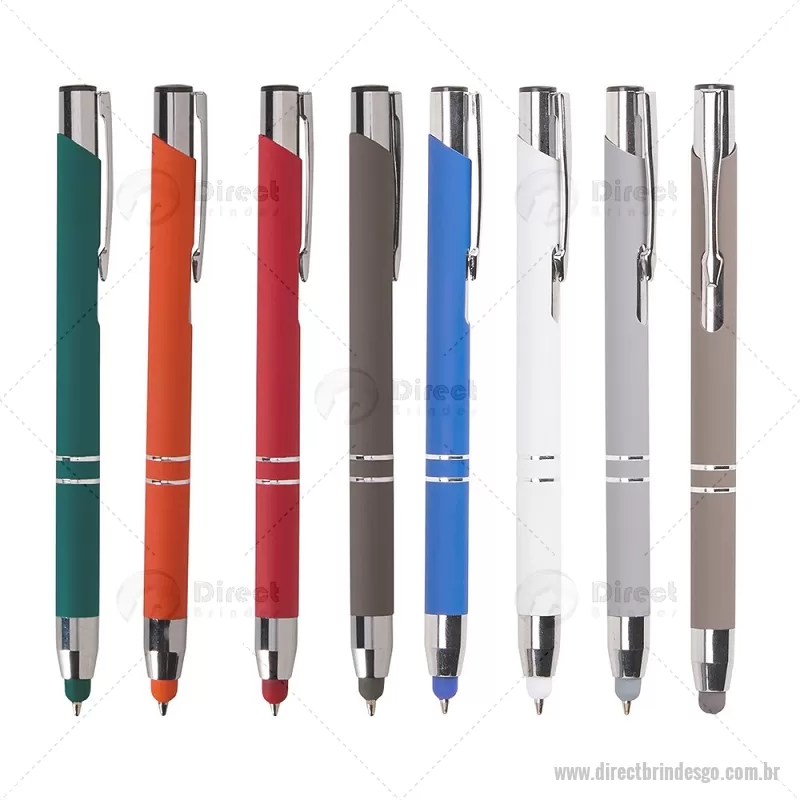 Caneta esferográfica com tinta azul 1,0 mm, acionamento por clique e corpo metálico. Conta com ponteira emborrachada touch, ideal para uso em smartphones, tablets e outros dispositivos com tela sensível ao toque, unindo funcionalidade e praticidade no dia a dia. - - DRTGOCMT302
