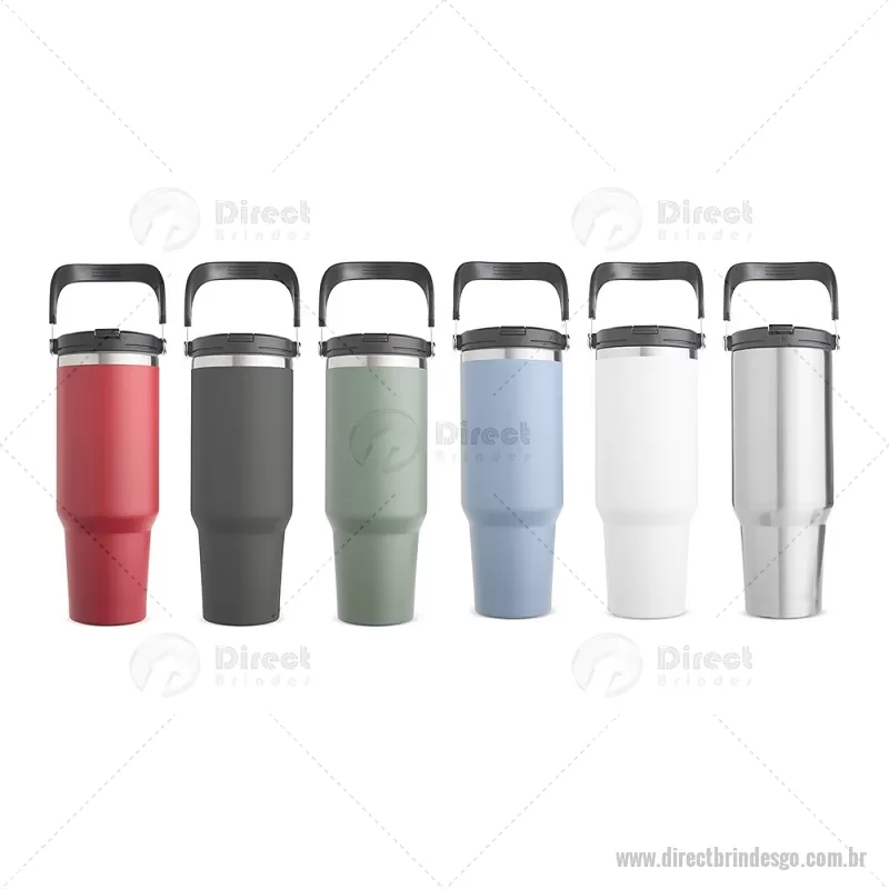 Copo térmico de 1,25 L em inox com parede dupla, ideal para manter a temperatura das bebidas por mais tempo. Possui tampa plástica rosqueável com vedação a vácuo, canudo plástico removível e alça em inox com revestimento em plástico para transporte seguro e prático. - - DRTGOCPO147