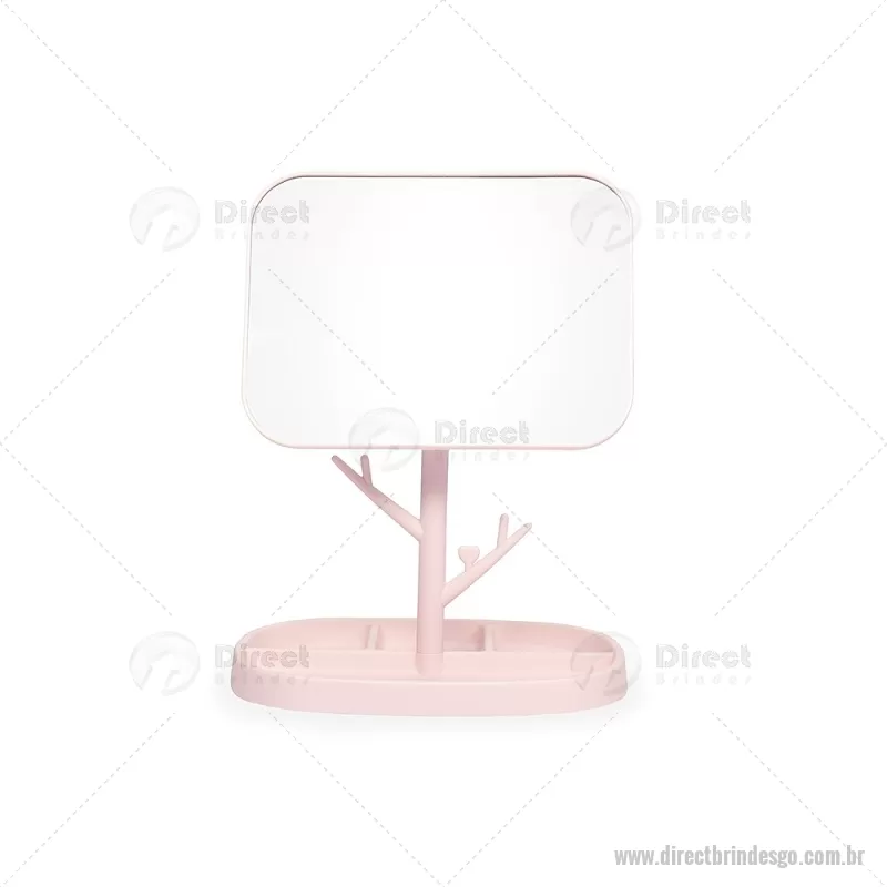 Espelho de mesa retangular e estrutura fácil de montar feita em plástico. Conta com pedestal giratório que permite ajustar o espelho em diferentes ângulos e posições. Além disso, possui ganchos laterais e quatro divisórias na base para organizar objetos. Altura : 30 cm x Largura : 15,5 cm x Comprimento : 20,5 cm Peso aproximado (g): 277 - - DRTGOFEM119