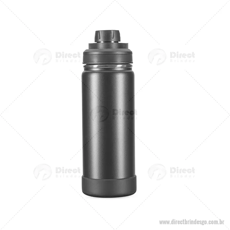 Garrafa Térmica 550ml inox com pintura eletrostática. Mantém a temperatura de líquidos por mais tempo graças à estrutura de parede dupla e ao isolamento a vácuo. Possui tampa plástica rosqueável com protetor de bocal e alça fixa. Acompanha protetor removível em silicone para a base. Altura : 22,5 cm x Largura : 7,4 cm x Circunferência : 23,3 cm Tamanho total aproximado (CxL): Diâmetro: 5,5 cm Peso aproximado (g): 290 - - DRTGOGAT172