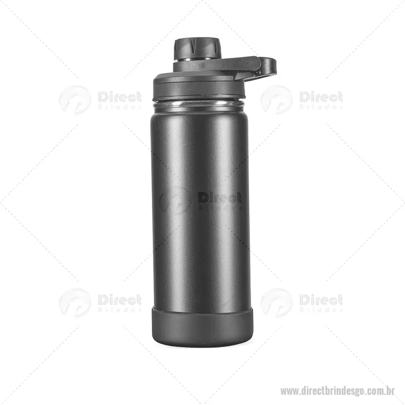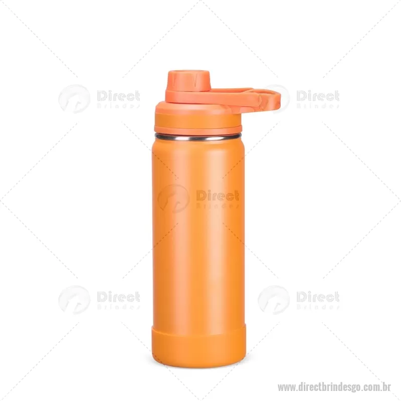 Garrafa Térmica 550ml inox com pintura eletrostática. Mantém a temperatura de líquidos por mais tempo graças à estrutura de parede dupla e ao isolamento a vácuo. Possui tampa plástica rosqueável com protetor de bocal e alça fixa. Acompanha protetor removível em silicone para a base. Altura : 22,5 cm x Largura : 7,4 cm x Circunferência : 23,3 cm Tamanho total aproximado (CxL): Diâmetro: 5,5 cm Peso aproximado (g): 290 - - DRTGOGAT172