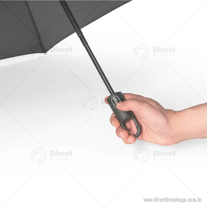 GUSTAVO. Guarda-chuva dobrável de 23'' em 100% poliéster reciclado pongee 190T (100% rPET) com abertura e fecho automático Guarda-chuva de 23'' em poliéster 100% reciclado pongee 190T, com varetas em fibra de vidro, haste metálica e pega em ABS 35% reciclado. O guarda-chuva, dobrável em 3 seções, tem abertura e fecho automático e é à prova de vento. Fornecido em bolsa. Medidas: ø1050 x 330 mm | Sacola: ø50 x 250 mm Peso do Produto (g.): 380 - - DRTGOGCH052