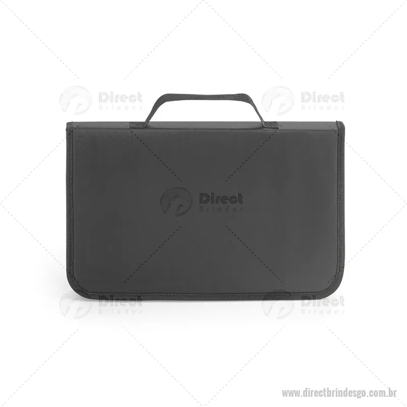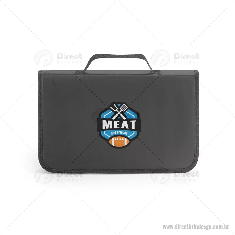 Kit churrasco em estojo de nylon 210D com tábua em PP e 5 utensílios em aço inox e PP: faca chefe, faca boning, faca pequena, garfo e afiador. Certificação EU Food Grade. Estojo: 350 x 230 x 40 mm | Tábua: 283 x 192 x 5 mm - - DRTGOKCH056