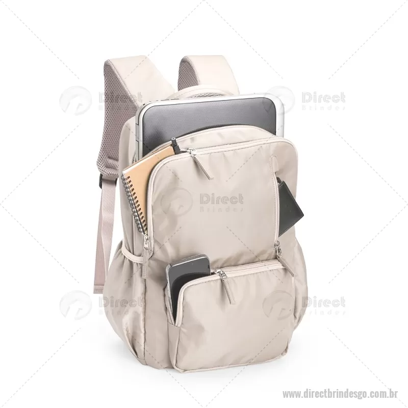 Mochila Poliéster 23L Descrição: Mochila de design ágil, feita em poliéster impermeável e pronta para encarar qualquer rotina. Com capacidade máxima de 23 litros, o compartimento interno traz uma divisória ideal para guardar notebooks de até 15,6 polegadas. Além disso, conta com três bolsos frontais em diferentes tamanhos e outros dois, posicionados nas laterais, com elástico. As alças e região das costas possuem revestimento em espuma respirável para maior conforto durante o uso. Altura : 42 cm x Largura : 28 cm x Profundidade : 13 cm Peso aproximado (g): 450 - - DRTGOMC245