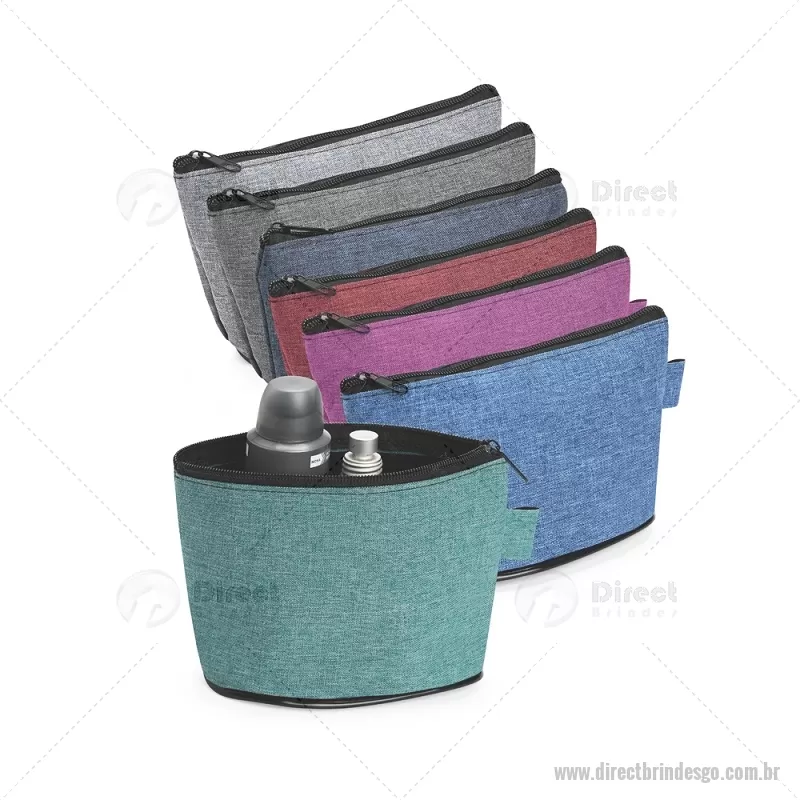 Nécessaire em poliéster com mescla de PVC, resistente à água e com fechamento em zíper. Possui pequena alça lateral, ideal para prender chaveiros ou ganchos, oferecendo praticidade no uso diário. - - DRTGONC148