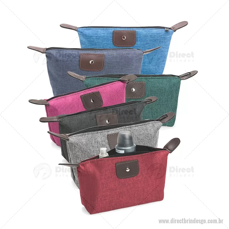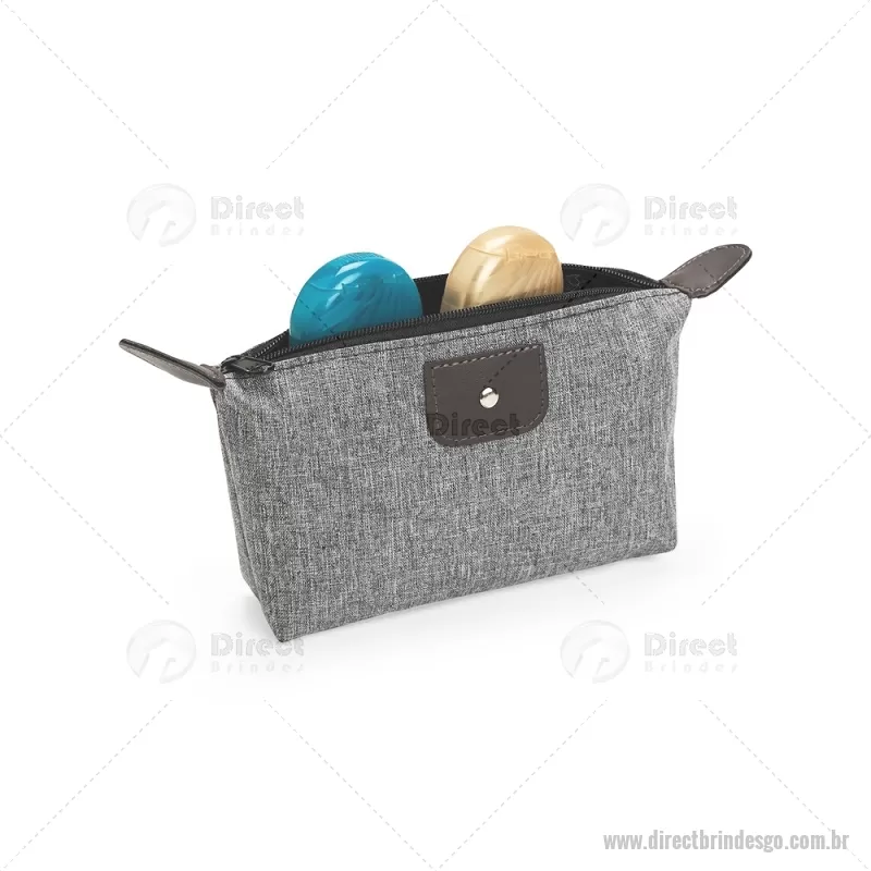 Nécessaire compacto em poliéster com mescla de PVC resistente à água. Possui fechamento em zíper e acabamento com detalhes em bidim e metal, oferecendo praticidade e um visual moderno para organizar pequenos itens do dia a dia. - - DRTGONC150