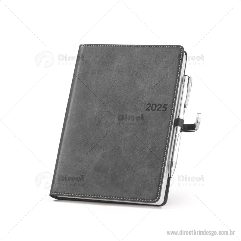 Agenda A5 em c. sintético. Fecho magnético com peça metálica brilhante. Com suporte para caneta esferográfica. Fornecida com bolsa de non-woven. Caneta esferográfica inclusa. Bolsa: 205 x 250 mm Agenda tamanho A5 com, Miolo em 2 Cores, com folhas Pautadas Marfim e caneta tinta azul. - - DRTGOAGE017