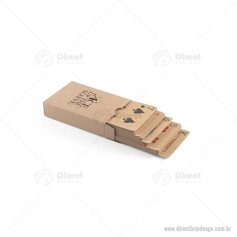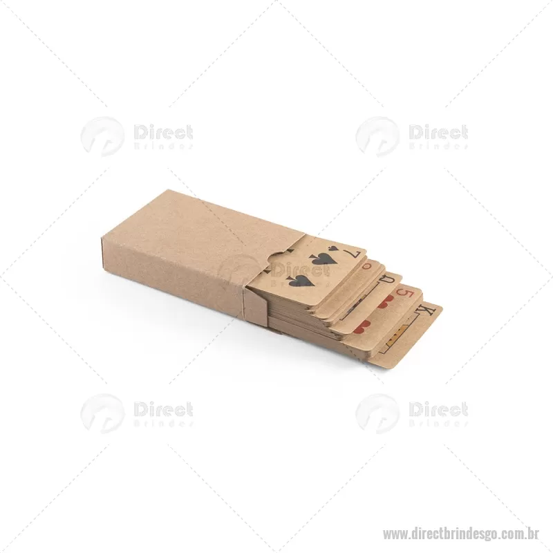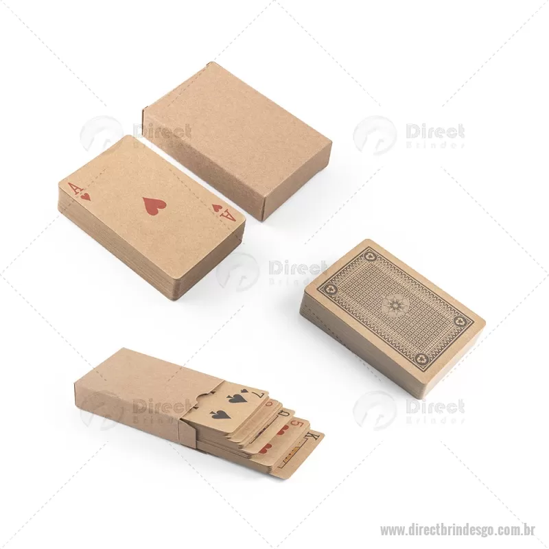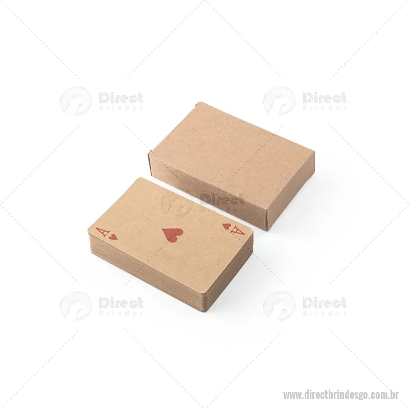 Baralho de 54 cartas clássicas em papel kraft Baralho com 54 cartas clássicas em papel kraft, proveniente de gestão florestal sustentável, ideal para compartilhar bons momentos com amigos e família. Fornecidas em caixa presente de papel kraft reciclado. A cor e o resultado da impressão nos materiais naturais pode variar entre produtos. medidas: 60 x 90 x 20 mm Peso do Produto (g.): 57 - - DRTGOJOG011