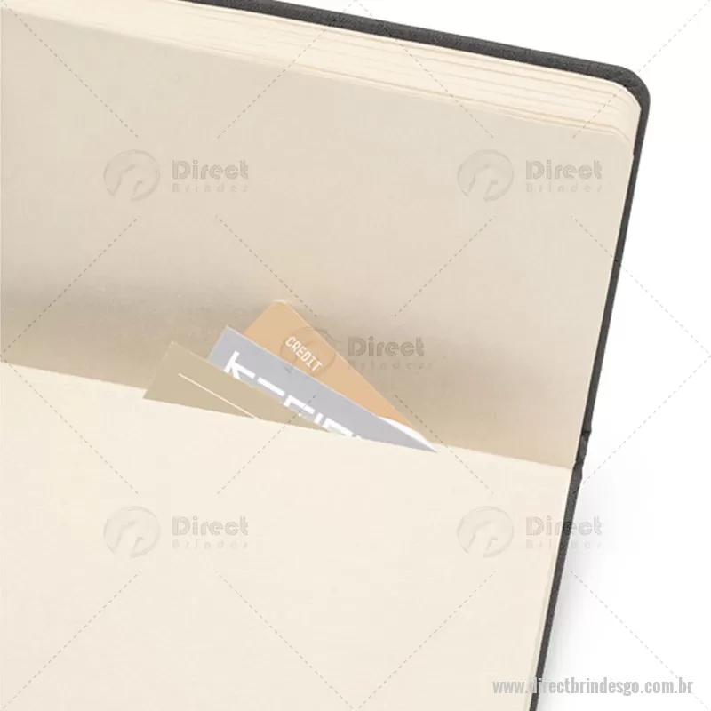 Bloco de anotações A5 em couro reciclado com 192 páginas pautadas cor marfim, em papel proveniente de gestão florestal sustentável. Suporte para esferográfica (não incluída), elástico e fita separadora em preto. Contém bolso interior. Fornecido em envelope preto de cartão. 140 x 210 mm - - DRTGOBLC207
