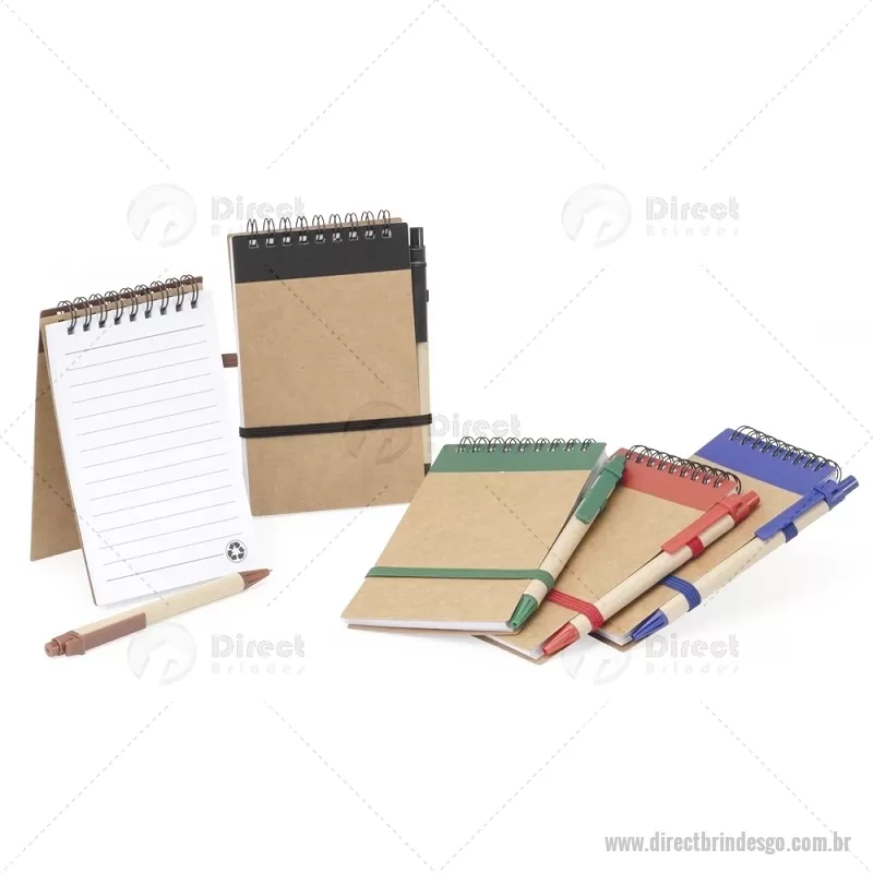 Bloco de anotações ecológico com caneta, feito em kraft com detalhe plástico. Contém aproximadamente 70 folhas brancas com pauta, porta caneta elástico, elástico para lacre e acompanha caneta de papelão com detalhes plásticos, carga esferográfica azul 1.0mm e acionamento por clique. Largura : 9 cm x Espessura : 1,5 cm x Comprimento : 14,9 cm Tamanho total aproximado (CxL): Caneta - 13,8 cm x 1,4 cm Peso aproximado (g): 74 - - DRTGOBLC216