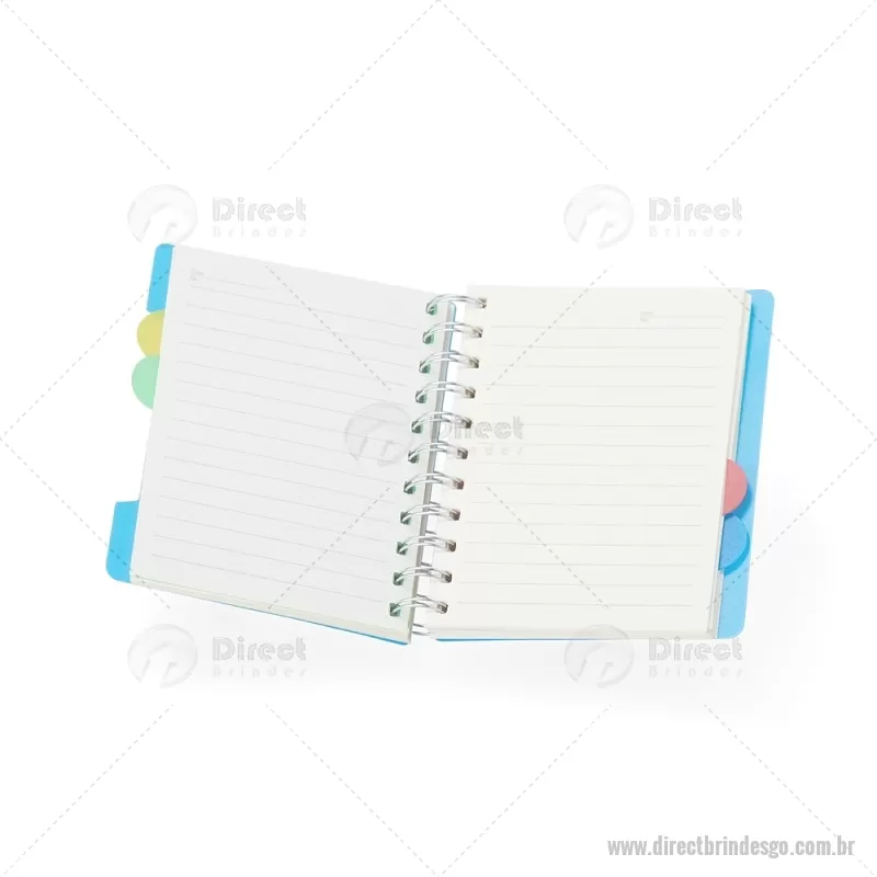Caderno pequeno com 4 divisórias e abas para identificações, capa plástica com wire-o metálico. Contém aproximadamente 103 folhas marfins e folha inicial com tarjas para organizar e identificar as divisórias. Altura : 14,5 cm x Largura : 12,3 cm x Espessura : 1,4 cm Peso aproximado (g): 152 - - DRTGOBLC212