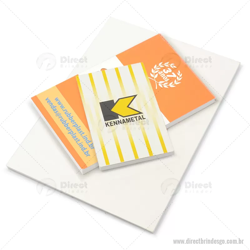 Bloco de anotações formato 7,0x11cm com 50 folhas. Capa em triplex 300 gs/m2 com verniz de maquina impressão 4x0, miolo liso em papel branco sem marca d'agua. Peso: 25 gramas a unidade. Ideal para brindes baratos, ações promocionais e eventos corporativos. - - DRTGOBLC086-P