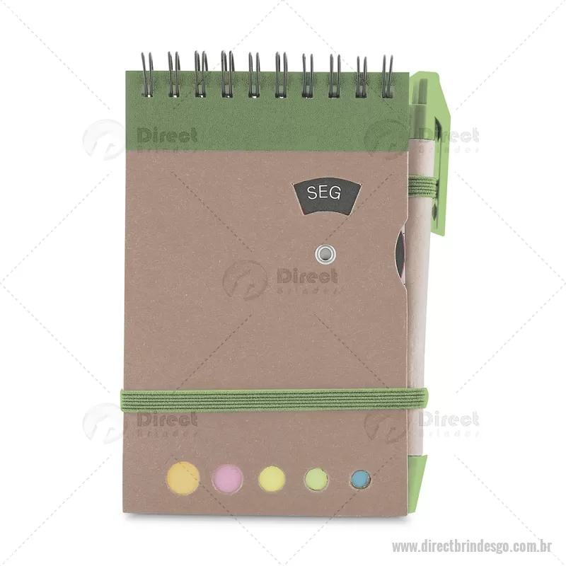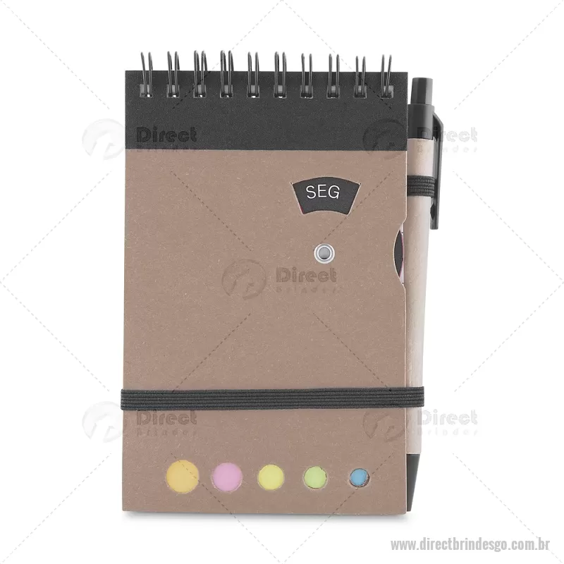 Mini caderno A6 com caneta com capa em papel kraft, com 70 folhas pautadas e blocos adesivos (sticky notes) coloridos. Acompanha disco rotativo na capa com os dias da semana e caneta produzida em papelão reciclado com detalhes em plástico e escrita em azul. Peso do Produto: 0,088kg (Caderno) Peso do Produto: 0,004kg (Caneta) Dimensão Produto: 14,5x9cm (Caderno) Dimensão do Produto: 3,6xø0,9cm (Caneta) - - DRTGOBLC275
