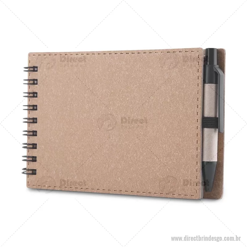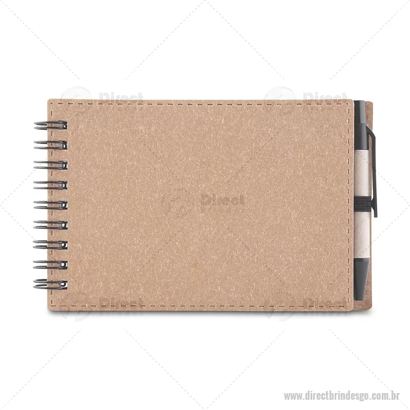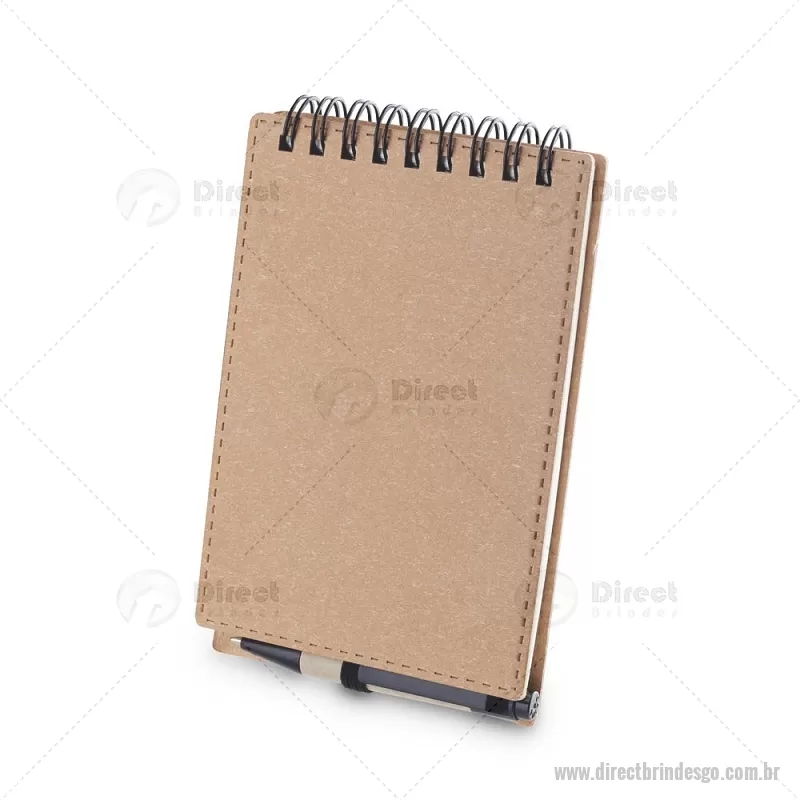 Mini Bloco/ Caderno A6 de anotações com caneta Mini Caderno com capa em papelão e encadernação espiral wire-o, 70 folhas sem pauta em 70g/m². Acompanha caneta confeccionada em papelão reciclado com detalhe em plástico. Dimensão Produto: 14x9cm (Caderno) Dimensão Produto: 8,3xø1cm (Caneta) Peso do Produto: 0,084kg - - DRTGOBLC277