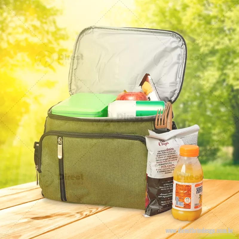 Bolsa térmica de poliéster com três compartimentos, capacidade de 9 litros. A bolsa possui revestimento térmico em PEVA atóxico com costura soldada (não vaza), alça de mão, bolsos laterais telados e acompanha alça transversal. - - DRTGOBT048