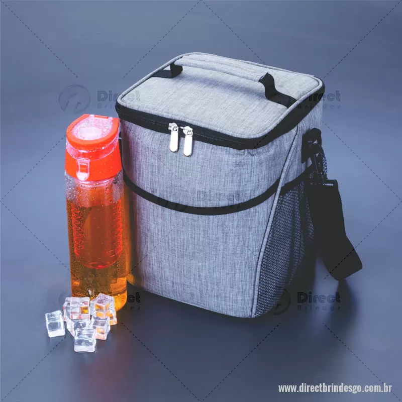 Bolsa / Mochila Térmica Grande, com capacidade de 12 litros em Tecido Nylon Poliéster Características: * 01 Bolso frontal * 02 Bolsos Laterais * Alça de ombro ajustável * Alça de mão * Parte interna soldada / retém liquido. * Gravação no bolso frontal * Laser placa de metal: 4,9 x 2,9 cm. - - DRTGOBT014