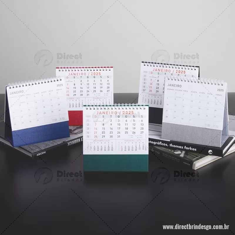 Calendário de mesa 2025 em papel couche 115g, base percalux. Altura : 16,1 cm x Profundidade : 7,7 cm x Comprimento : 15,5 cm Peso aproximado (g): 125 - - DRTGOCLD006