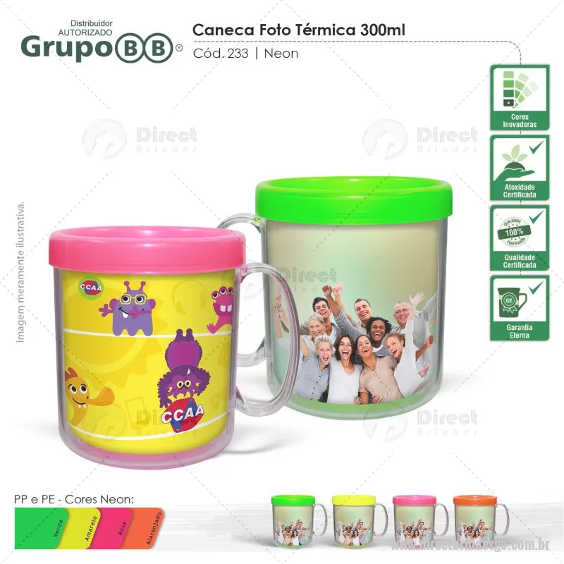 Caneca plástica injetada, atóxica, formada com corpo cristal e refil colorido. Dupla parede que conserva a temperatura e tem capacidade para 300 ml. Refil nas cores - Linha Sólida: amarelo, branco, alaranjado, preto / Neon: Rosa, amarelo, verde, laranja / Metalizado: Azul, verde, vermelho, lilás, prata. Parte externa PS cristal Transparente. Ótimo brinde para eventos e ações promocionais. Personalização 1 cor. Outras opções sob consulta. Distribuidor Autorizado Grupo BB. - - DRTGOZ233