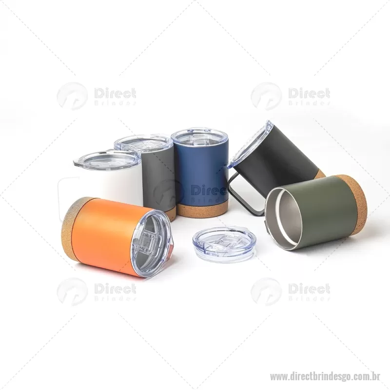Caneca Térmica de 400ml feita em inox com fundo de cortiça, tampa com bocal e trava de segurança. O item ideal para quem aprecia qualidade e design. Altura : 12,3 cm x Largura : 8,6 cm x Circunferência : 27,7 cm Peso aproximado (g): 305 - - DRTGOCAN090