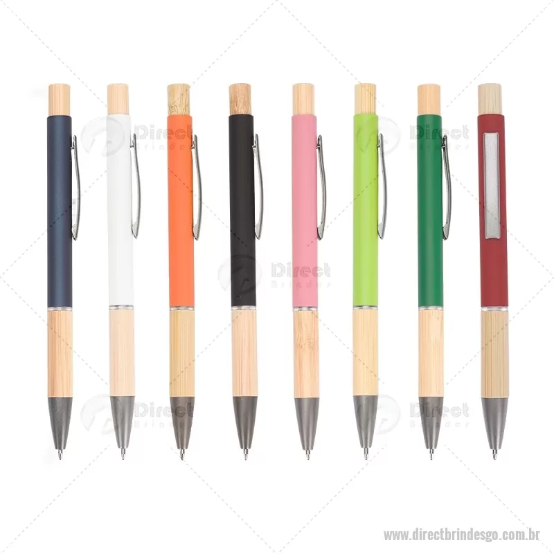 Caneta esferográfica azul 1,0 mm com corpo metálico, detalhes em bambu e acionamento por clique. Leve e confortável, proporciona escrita precisa no dia a dia. - - DRTGOCMT296