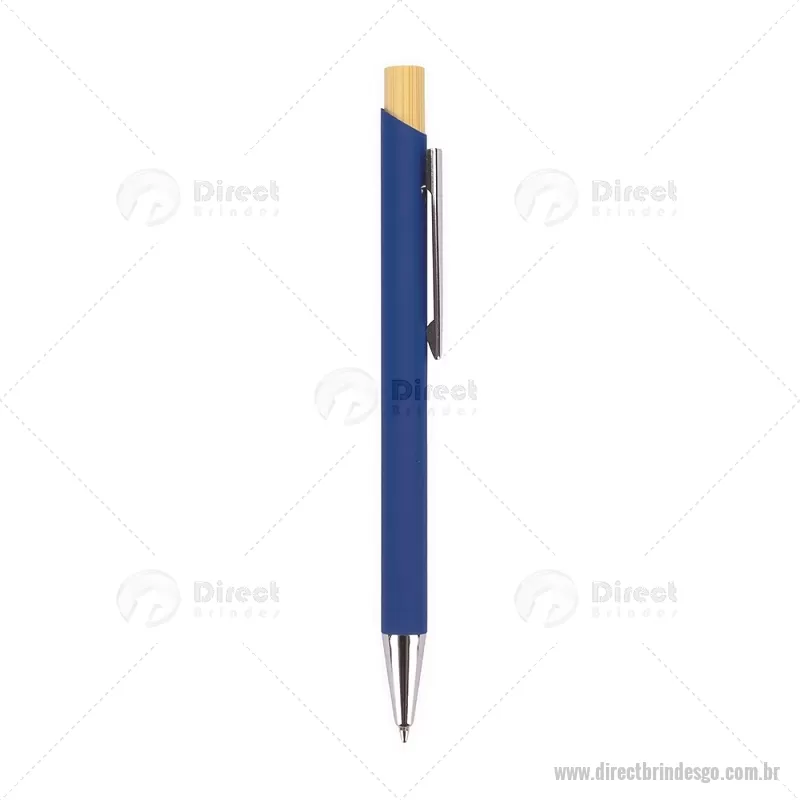 Caneta esferográfica azul 1,0 mm com corpo metálico e acionamento por clique em bambu. Oferece escrita leve, confortável e precisa para o uso diário. - - DRTGOCMT297