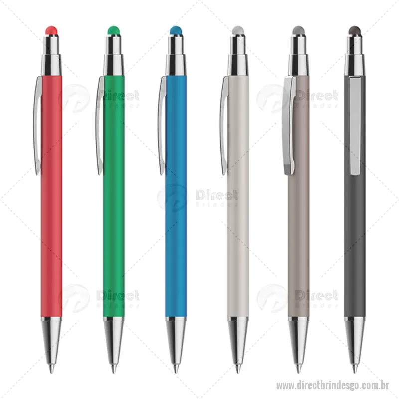Caneta esferográfica em metal com ponta touch e escrita em azul. - - DRTGOCMT159