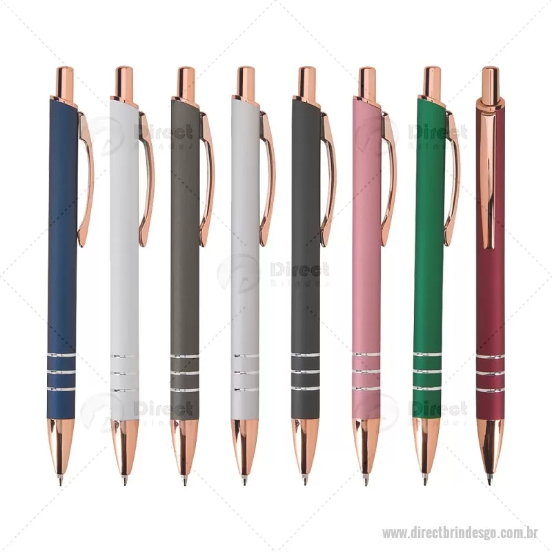 Caneta em metal com acionamento por clique e carga esferográfica azul de 1,0 mm. Leve e confortável, garante escrita precisa e uso prático no dia a dia. - - DRTGOCMT303