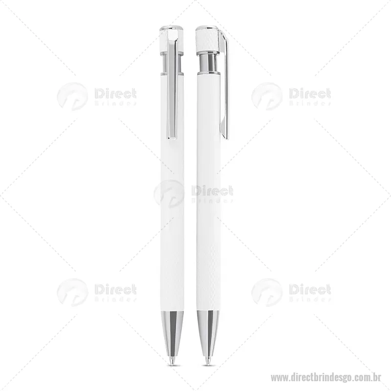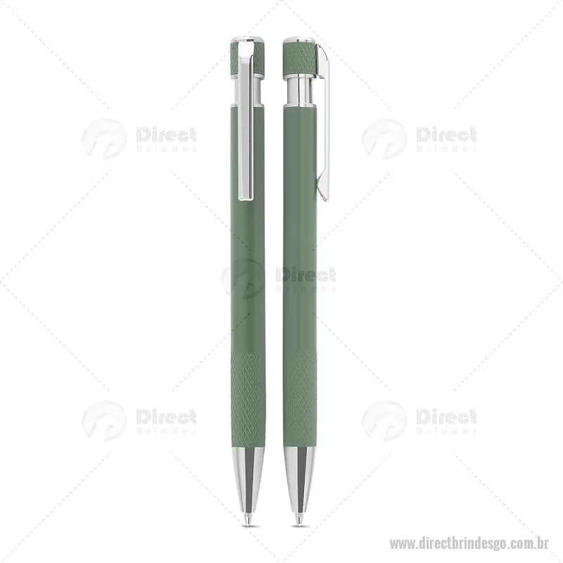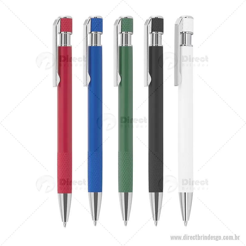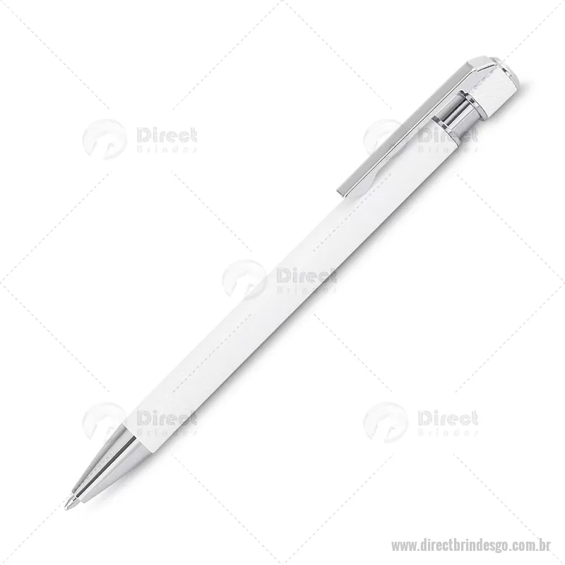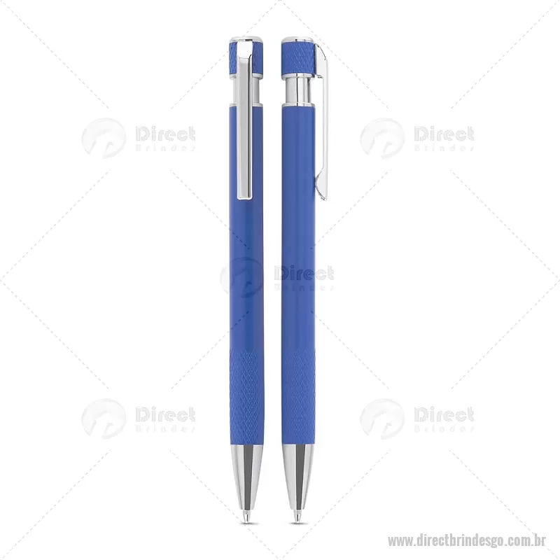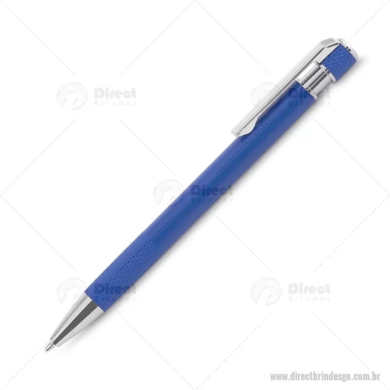 Caneta esferográfica com corpo em alumínio reciclado, acionador e clipe cromado, escrita em tinta azul. Refil substituível tipo Parker. Peso do Produto: 0,016kg Dimensão do Produto: 13,6xø0,9cm - - DRTGOCMT306