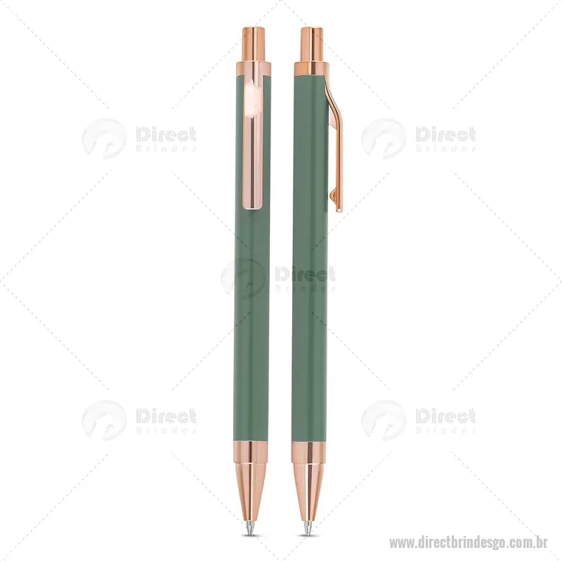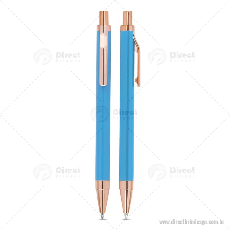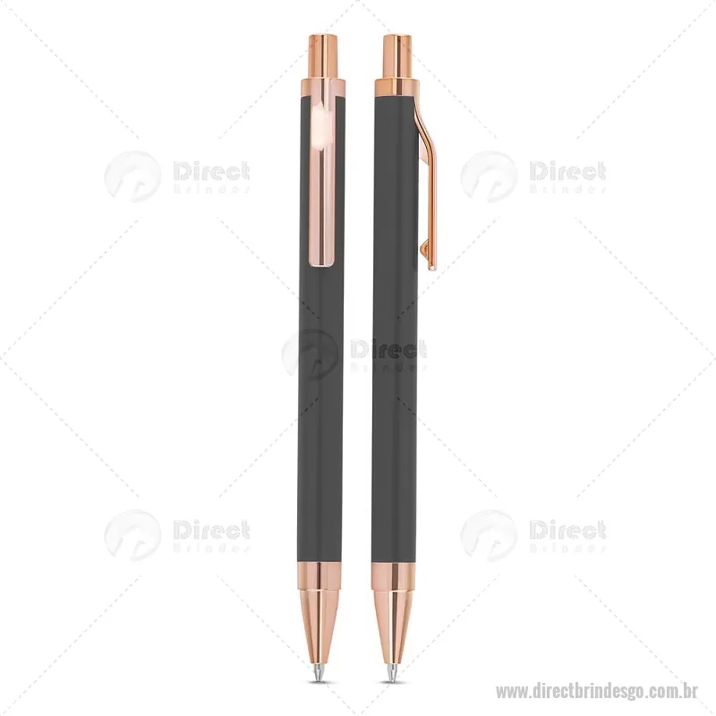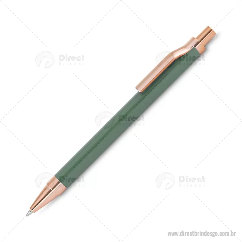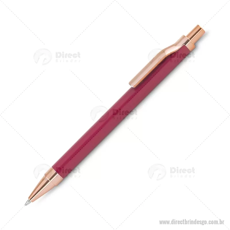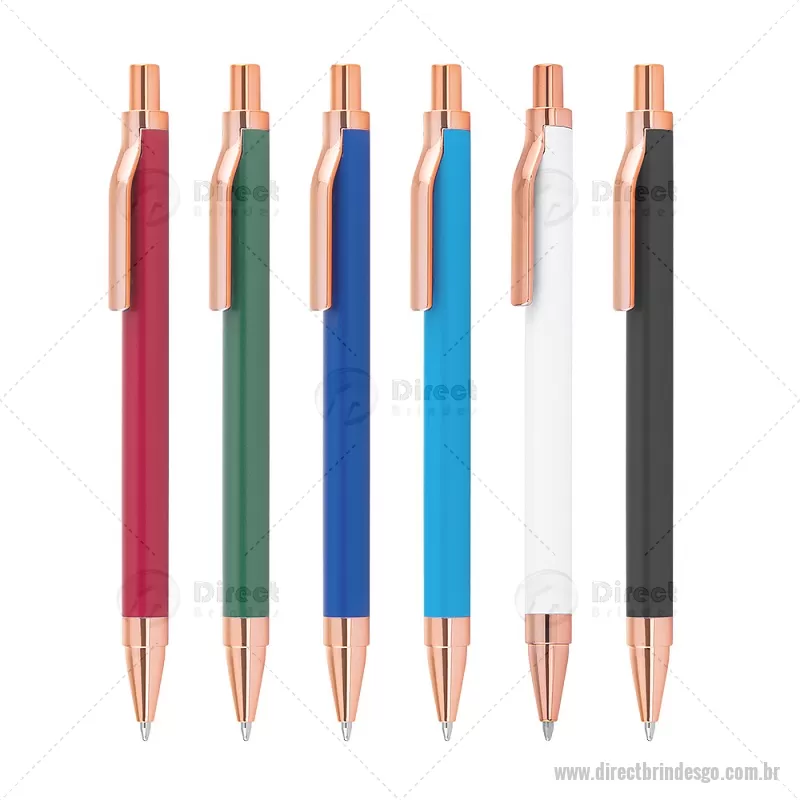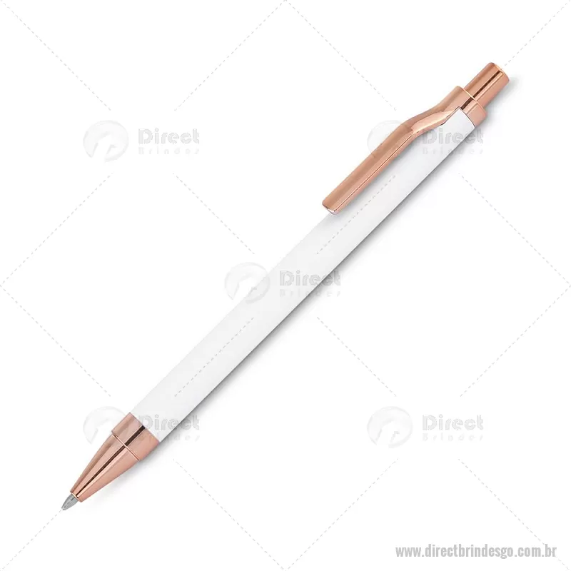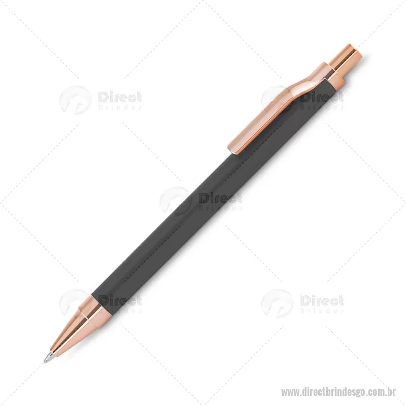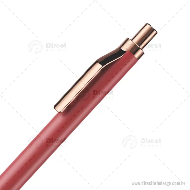 Caneta esferográfica com corpo em alumínio reciclado, acionador e clipe em acabamento rosé/bronze. Peso do Produto: 0,014kg Dimensão do Produto: 13,8xø1cm - - DRTGOCMT307