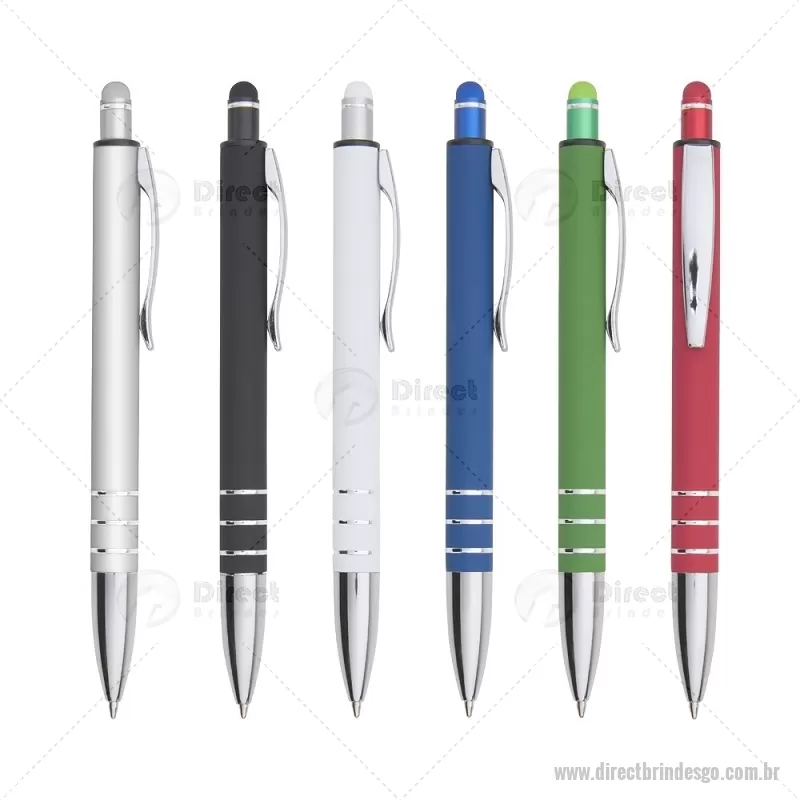 Caneta Metal Touch Caneta metálica touchscreen com acabamento emborrachado, acionamento por clique e carga esferográfica azul 1.0mm. Altura : 14,4 cm x Largura : 1,6 cm Peso aproximado (g): 18 - - DRTGOCMT292
