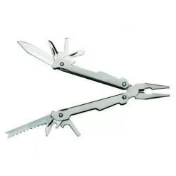 Canivete metal 11 funções com detalhe emborrachado preto. Funções: abridor de lata, lima, serra, furador, agulha, lâmina, saca-rolhas, chave de fenda, chave philips, tesoura, e pulsador. Gravação em laser. - - DRTGOCVT001