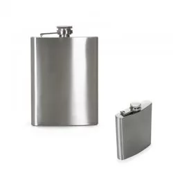 Cantil Porta Whisky em Aço Inoxidável 210ml. Ideal para se carregar no bolso, com tampa rosqueável sustentada por suporte na lateral superior. Brinde ideal para departamentos executivos e eventos corporativos. - - DRTGOGAR013