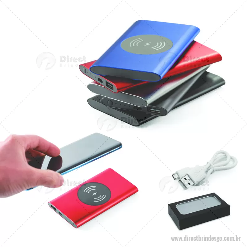 Bateria portátil Sem Fio e carregador wireless. Alumínio. Bateria polímero de lítio. LED: indicador de carga. Capacidade: 4.000 mAh. Tempo de vida ≥ 500 ciclos. Entrada 5V/2A e saída 5V/2A. Incluso cabo USB/micro USB para carregar a bateria. Fornecido em caixa presente. 123 x 70 x 10 mm. Celular descarregado é algo que incomoda demais, principalmente se você precisa estar sempre conectado, usa muito o WhatsApp, acessa as redes sociais com frequência e vive tirando fotos para registrar seus principais momentos. Para evitar esse problema, o Power Bank representa uma solução bem prática. Mas o que é Power Bank Wireless? Trata-se de um acessório que serve para recarregar a bateria do celular sempre que necessário, bastando aproxima-lo do seu aparelho com a tecnologia por indução. - - DRTGOTEC393