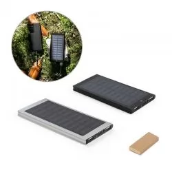 Bateria portátil em alumínio 100% reciclado 8.000 mAh Bateria em lítio, com painel solar e lanterna. Tem capacidade de 8.000 mAh e tempo de vida superior a 500 ciclos. Possui uma porta de entrada e saída USB-C e duas portas de saída USB-A. Incluso cabo USB-C para carregamento com cerca de 30 cm. Ideal para situações de emergência. Fornecido em caixa presente em papel kraft. 153 x 74 x 10 mm - - DRTGOTEC518