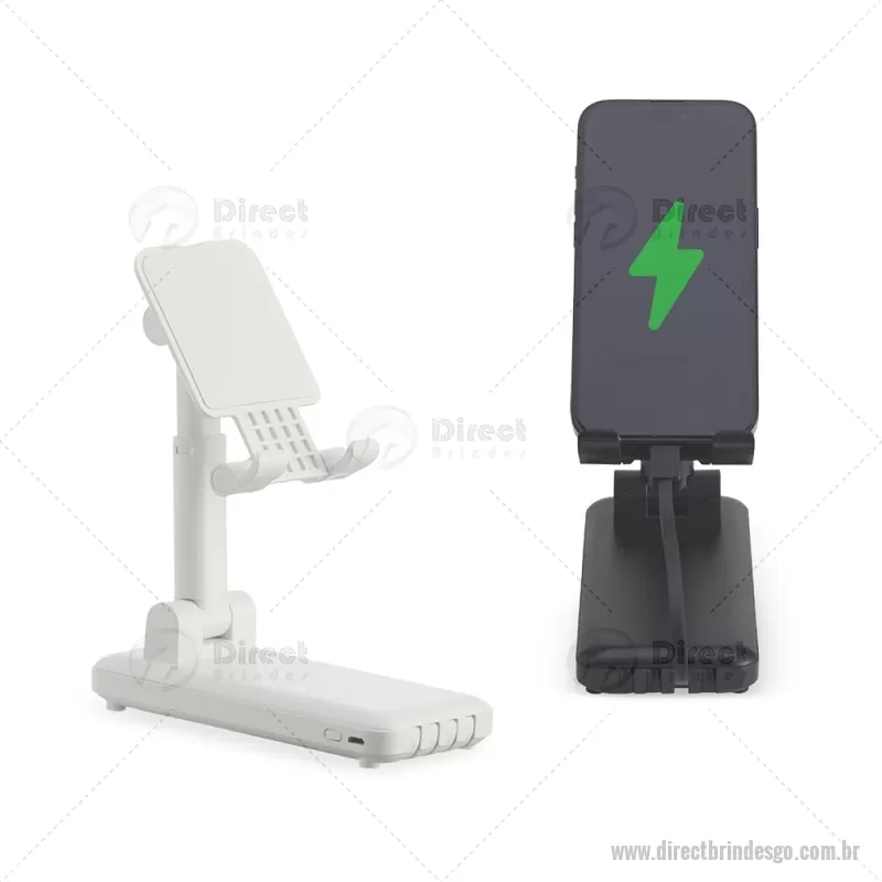 Power bank plástico de 10.000mAh multissaídas com suporte retrátil para celular ou tablet. Com indicadores led de bateria e base antiderrapante, o carregador possui os cabos tipo-C , lightning, , V8 e USB acoplados. Acompanha cabo USB V8 e adaptador lightning. - - DRTGOTEC482