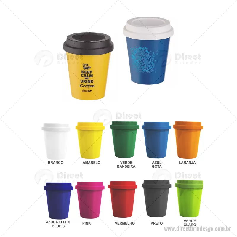 Copo Plástico em PP para café 350ML com tampa. Diversas cores, consultar. - - DRTGOCOF002